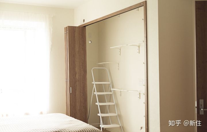 衣柜墻或者嵌入式衣柜,也是極簡(jiǎn)的表現(xiàn)方式,這和日式的衣柜布局很相似。