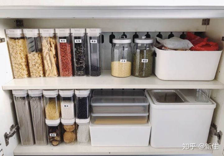 廚房柜內(nèi)整潔,也是需要依賴一些收納工具。比如最典型的就是谷物干貨的收納,以前大家都喜歡直接用塑料袋收納。慢慢地才發(fā)現(xiàn),不僅看起來(lái)亂,還容易霉。