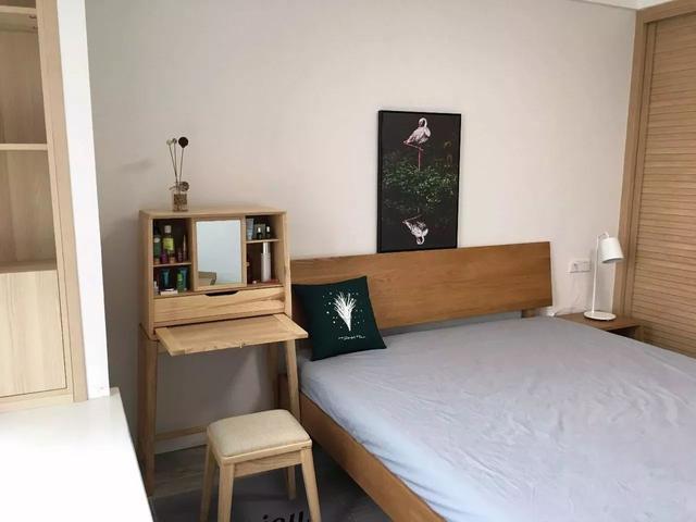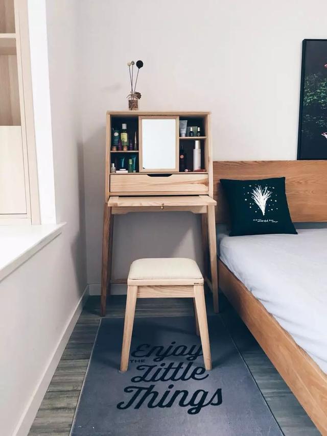 原木色梳妝臺,即可充當(dāng)電腦桌;